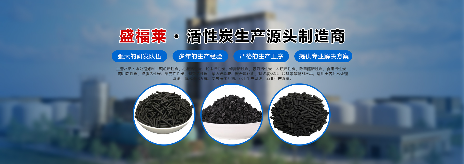 公司擁有先進的活性炭碳化生產設備及活性炭吸附裝置,專業的技術和生產人員產品型號多樣化